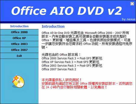 Office_AIO_DVD_v2(含 Microsoft Office 2000 - 2007繁體中文版 所有版本) (dvd1片裝)